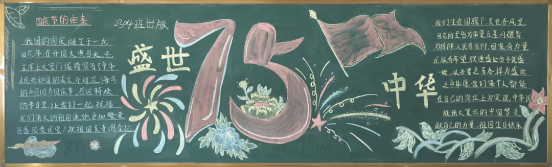为庆祝中华人民共和国成立75周年,XKTY.COM精心策划了一场别开生面、创意迭出的主题板报大赛,艺校学子们以笔为舟,以心为帆,深情地在一块块黑板上勾勒出了一幅幅色彩斑斓、情感饱满的爱国图景,不仅生动展现了他们对伟大祖国的深情厚谊,更淋漓尽致地传达了新时代青少年蓬勃的爱国情怀与昂扬向上的精神风貌。这场活动,如同一场视觉与情感的盛宴,让爱国情怀在艺校校园内激荡回响,熠熠生辉。
